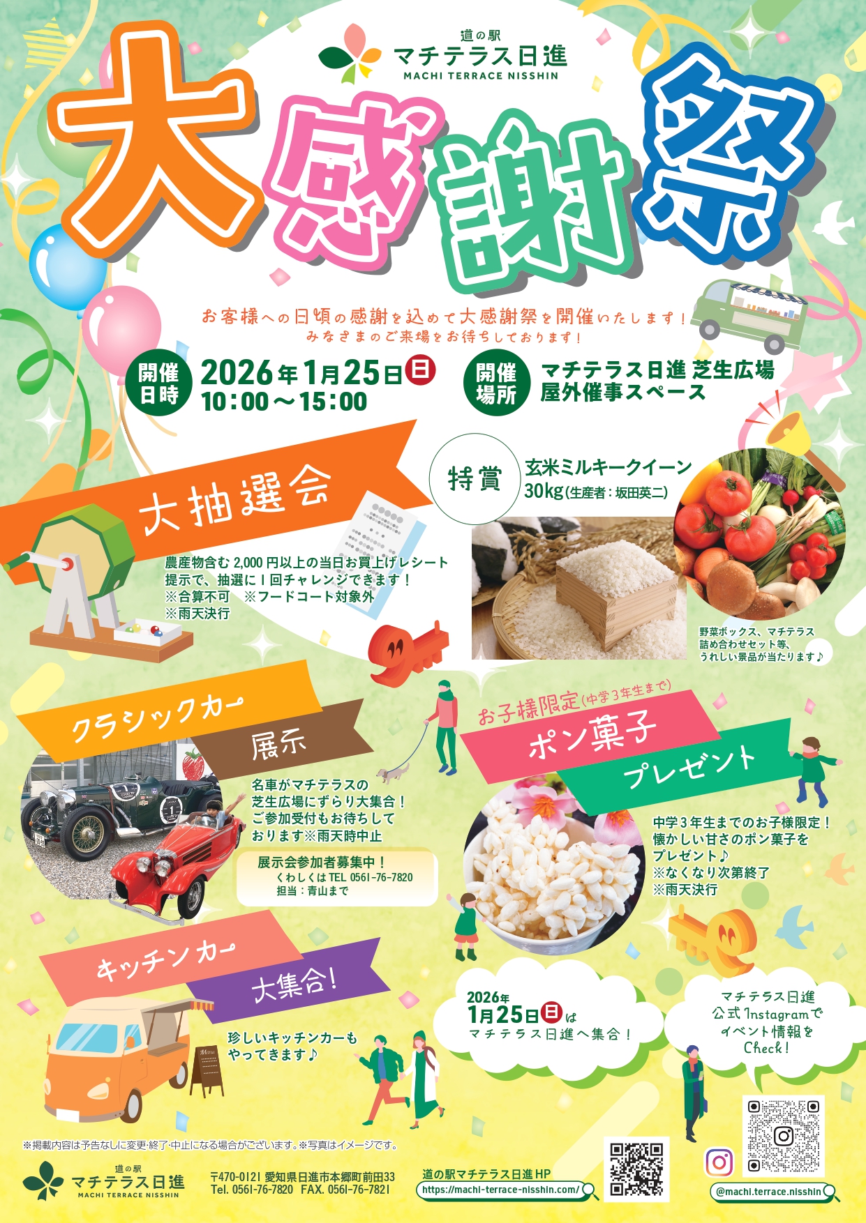 2026年1月25日(日)は マチテラス日進に集合!【大感謝祭】 開催のお知らせ