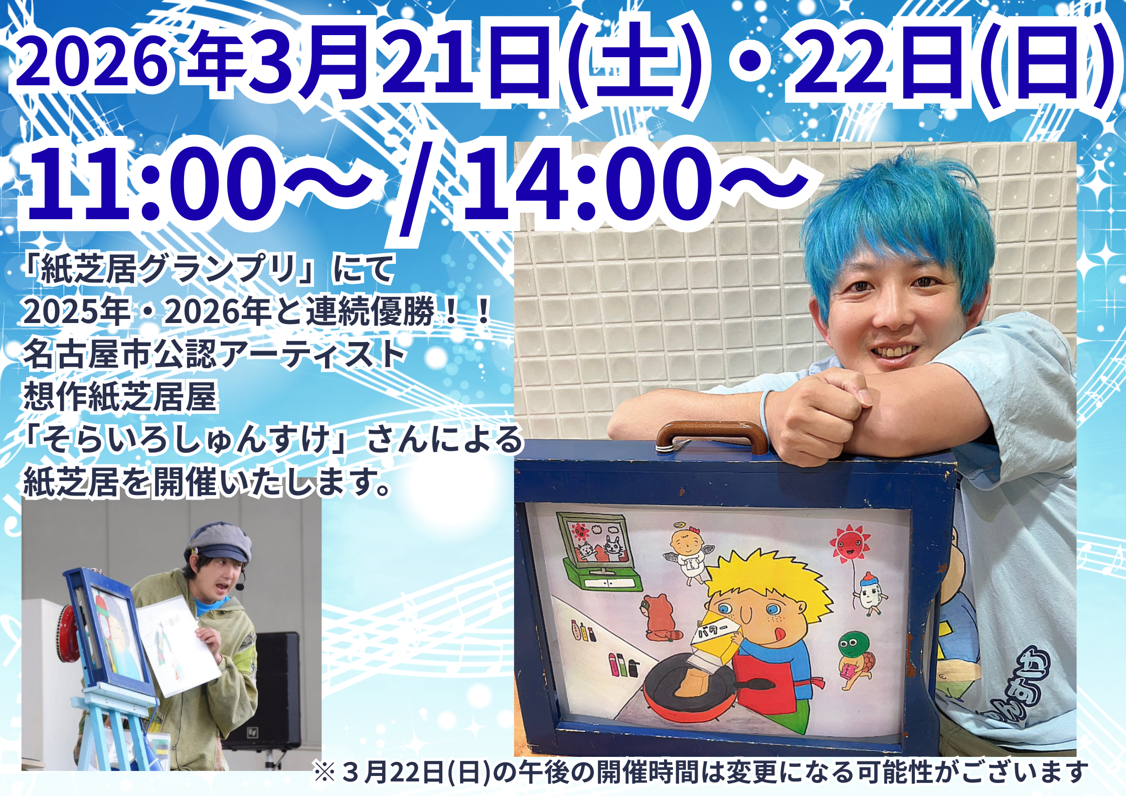 2026年3月21日(土) ・22(日) 創作紙芝居屋「そらいろしゅんすけ」さんによる紙芝居 開催