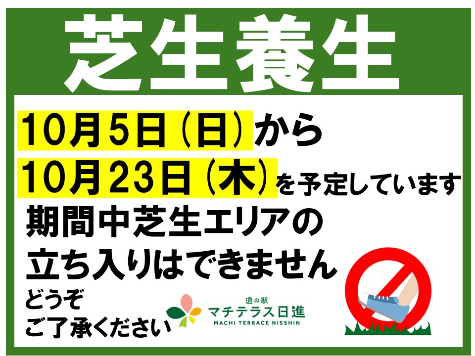 2025年10月5日(日)~23日(木)まで芝生の養生期間となります