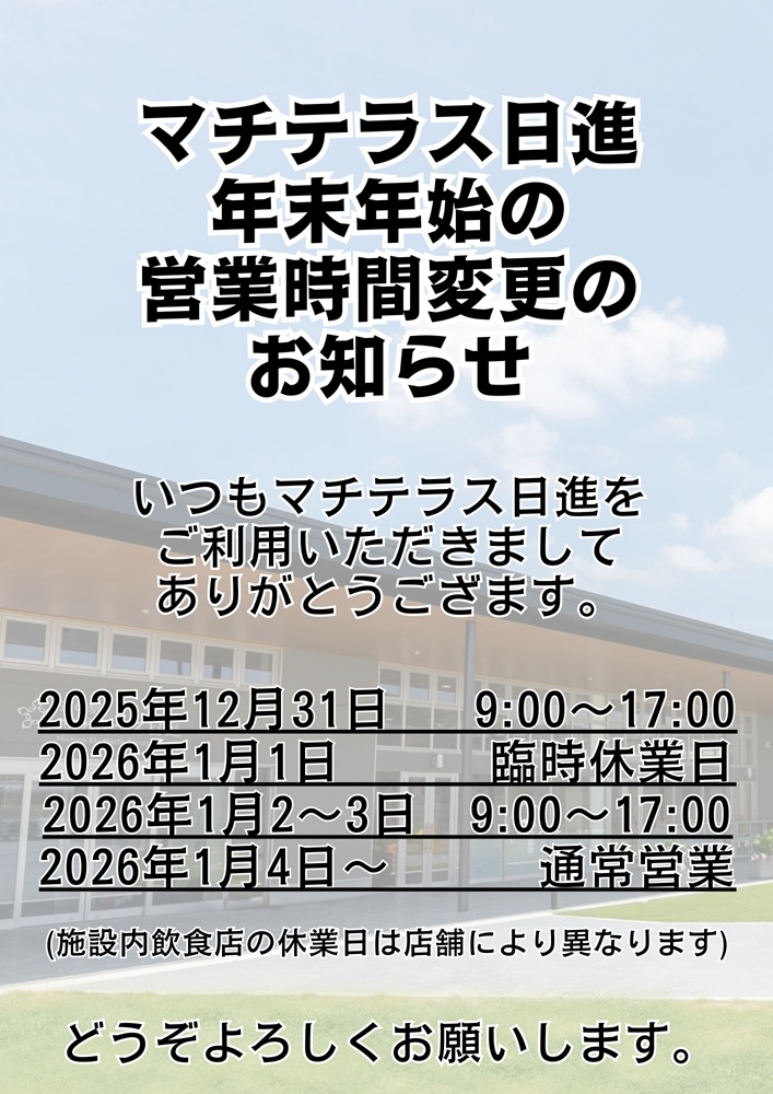 マチテラス日進 年末年始の営業時間変更のお知らせ