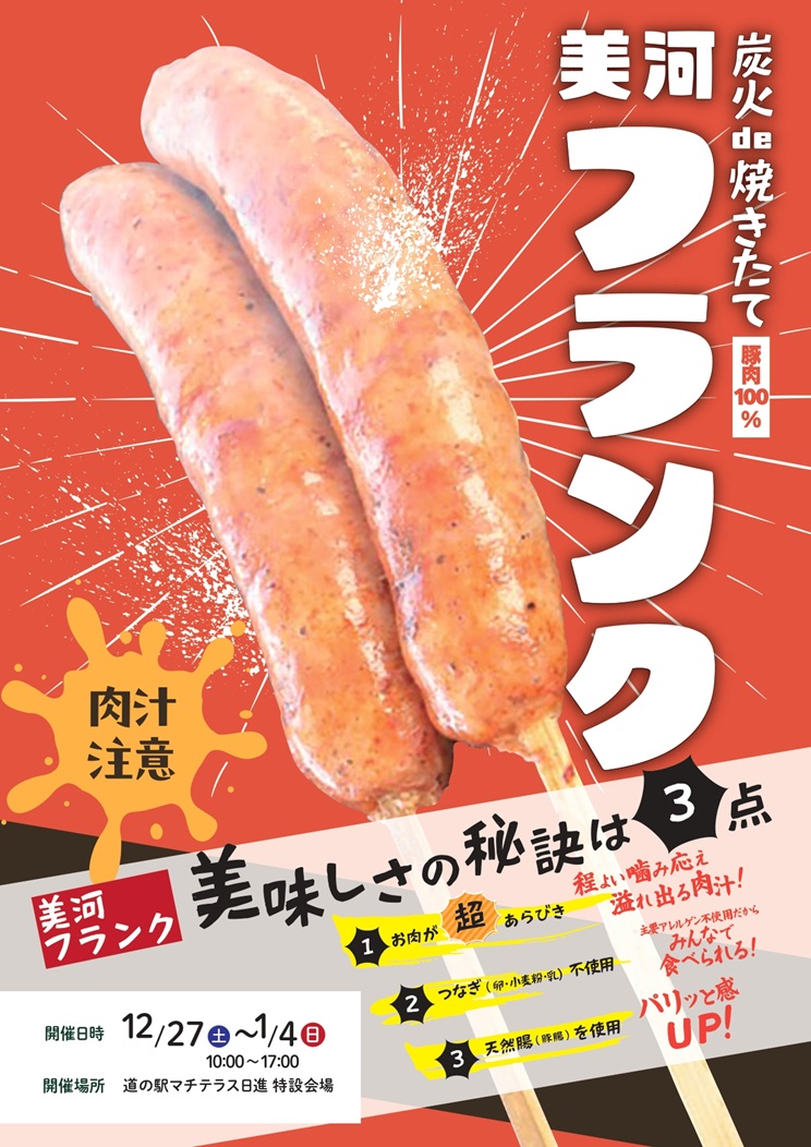 炭火で焼き立て「美河フランク」 販売会 開催のお知らせ