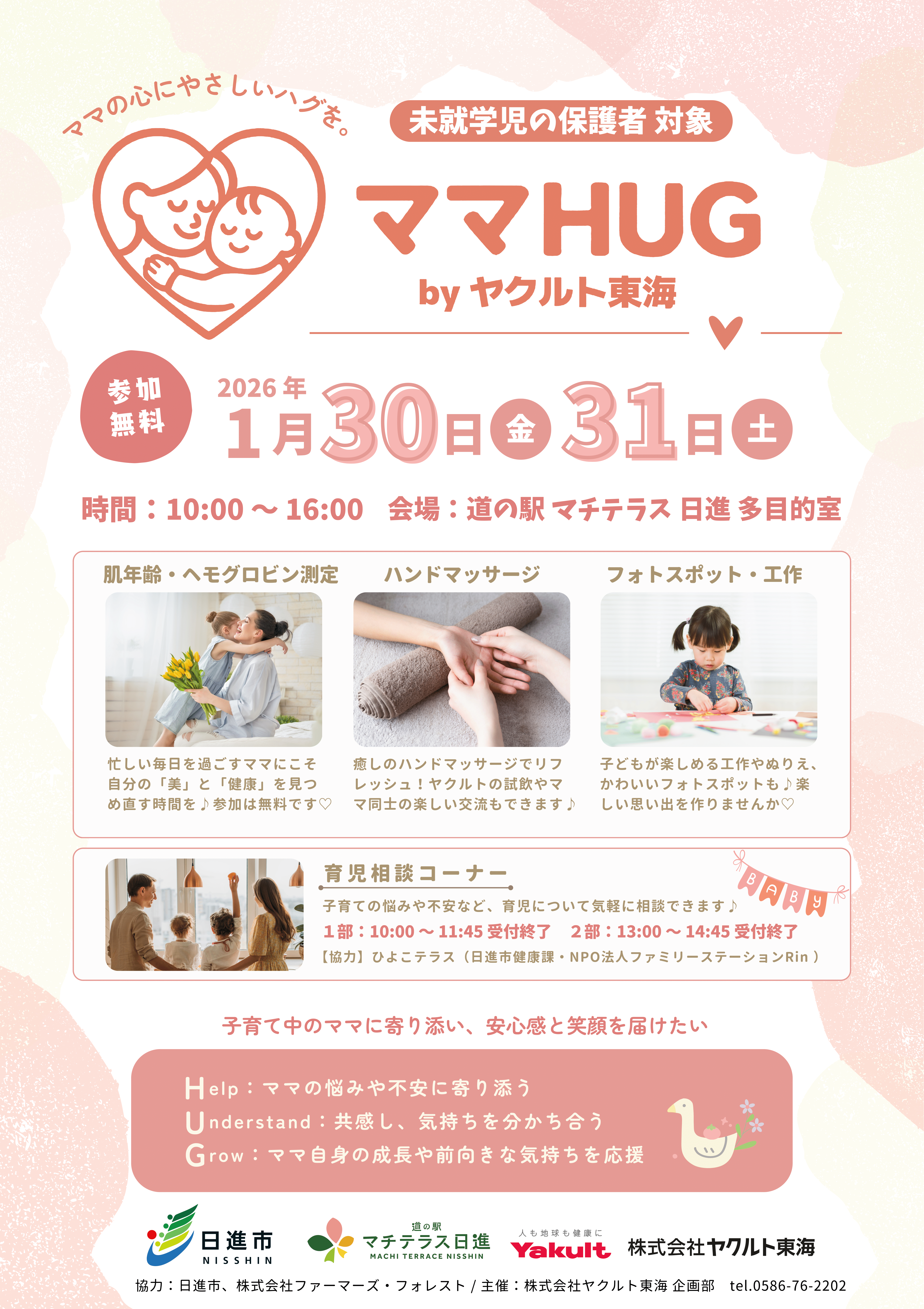 2026年1月30(金)・31日(土)【未就学児の保護者対象イベント】 ママHUG (byヤクルト東海)