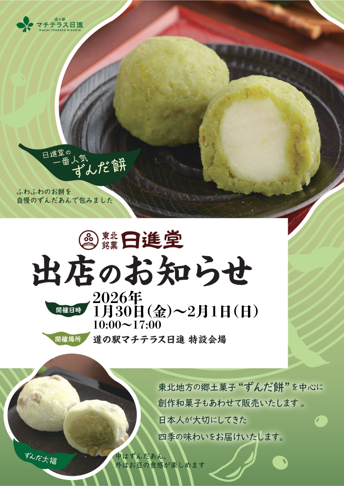 2026年1月30日(金)~2月1日(日) 「日進堂」 ずんだ餅 販売会 開催のお知らせ
