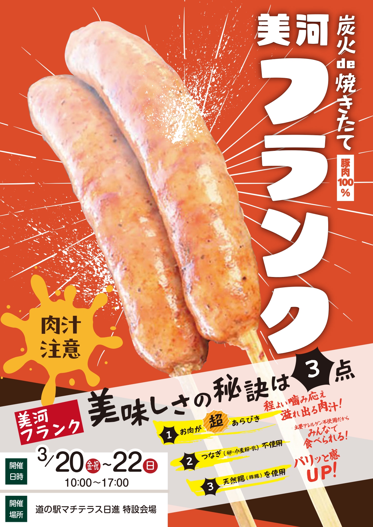 2026年3月20日(金・祝)~22日(日) 美河ハム「美河フランク炭火焼き販売会」