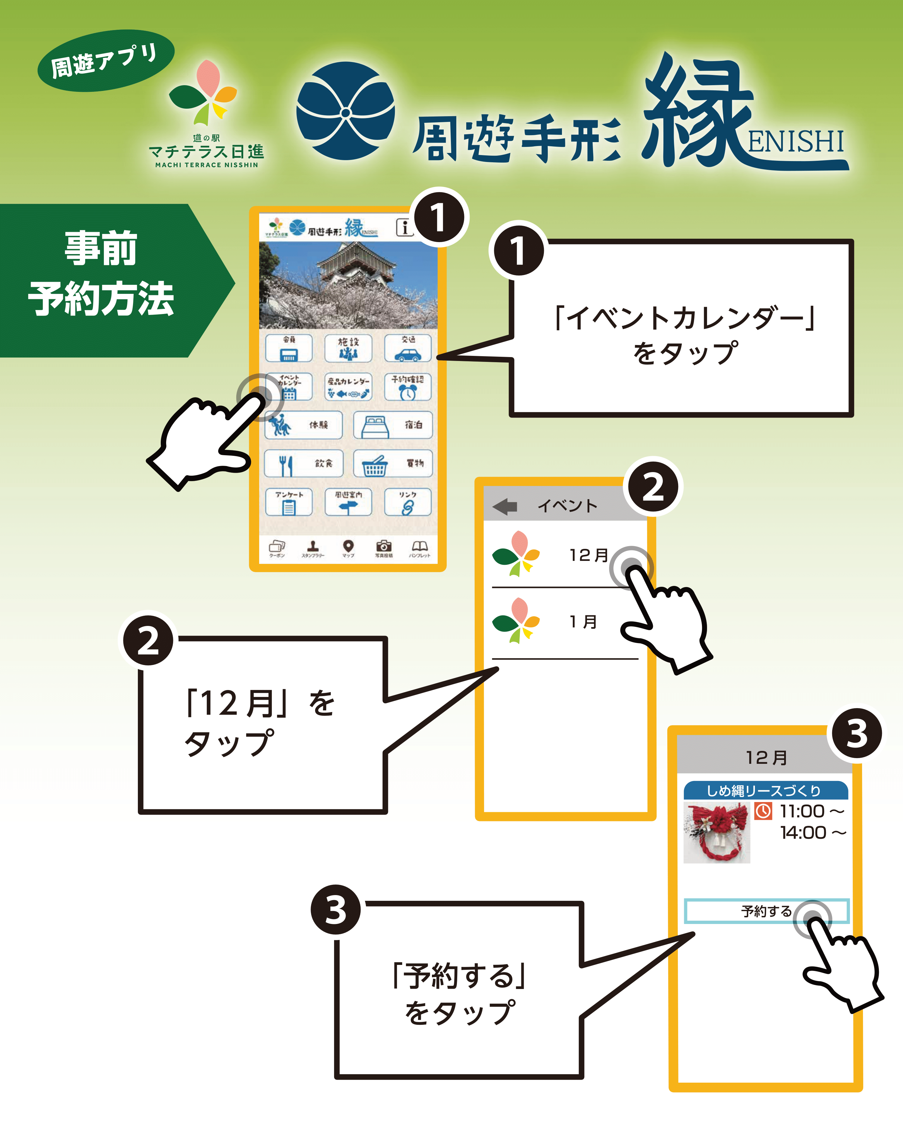 「マチテラス日進周遊アプリ~縁~のイベントページ内申込フォーム」よりお申込みください